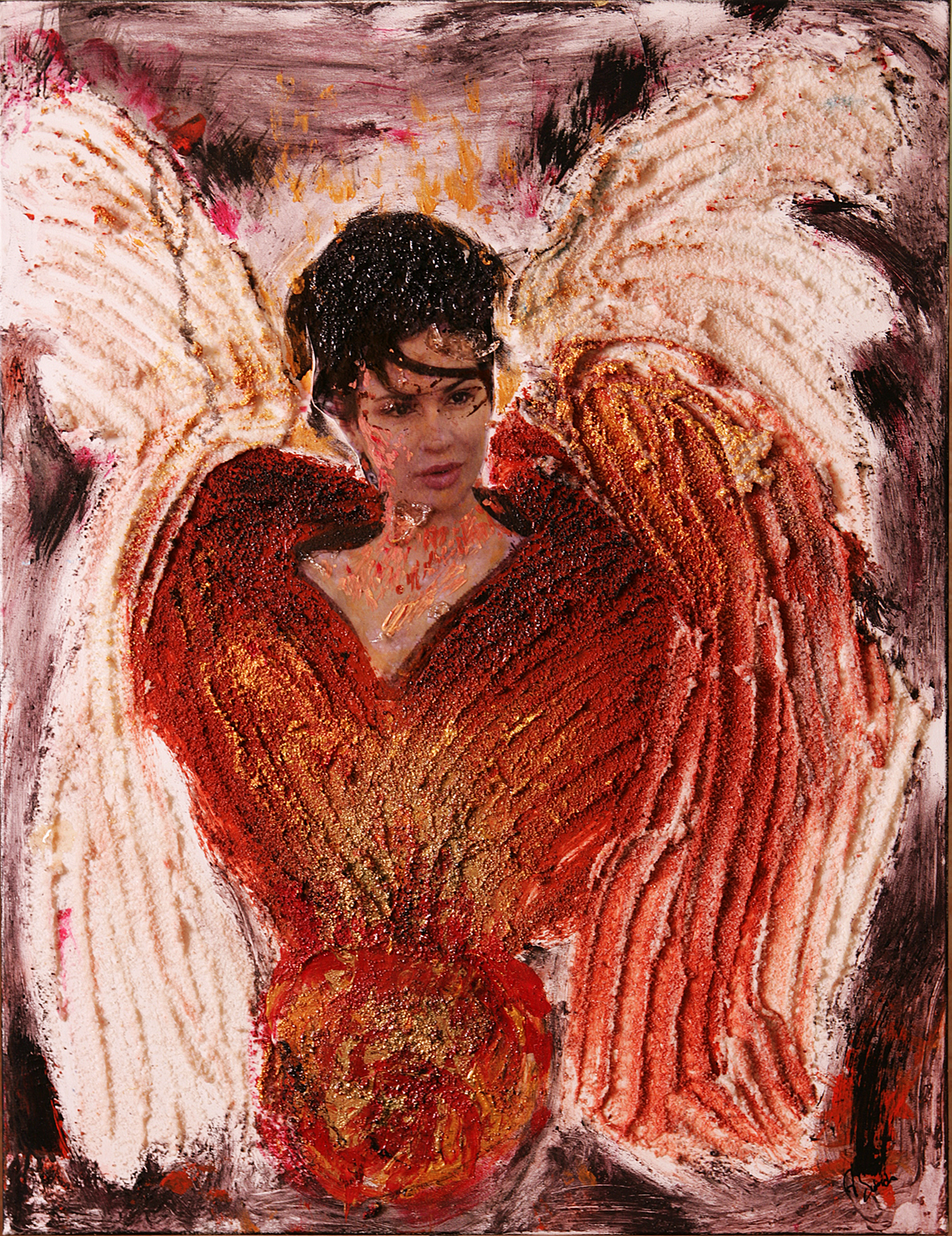 Título: AVE FÉNIX Técnica: mixta, collage acrílico, resina polvo cuarzo sobre lienzo Medidas: 90x70cm Año: 2012
