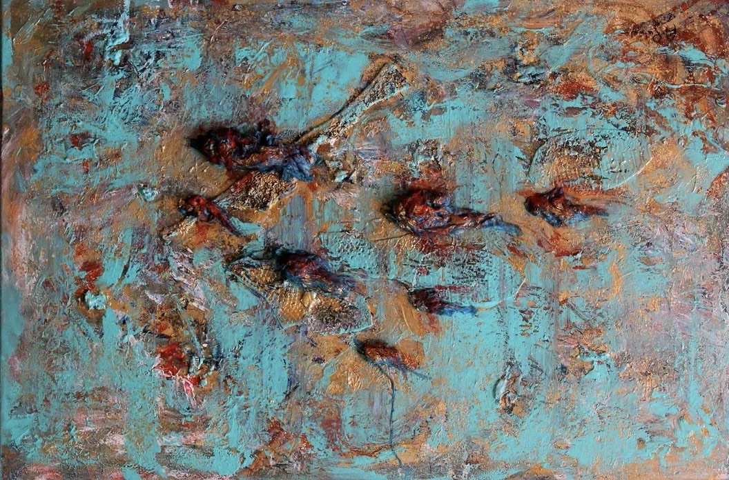 Título: CARDUME Técnica: mixta, tela, acrílico sobre lienzo Medidas: Año: 2018