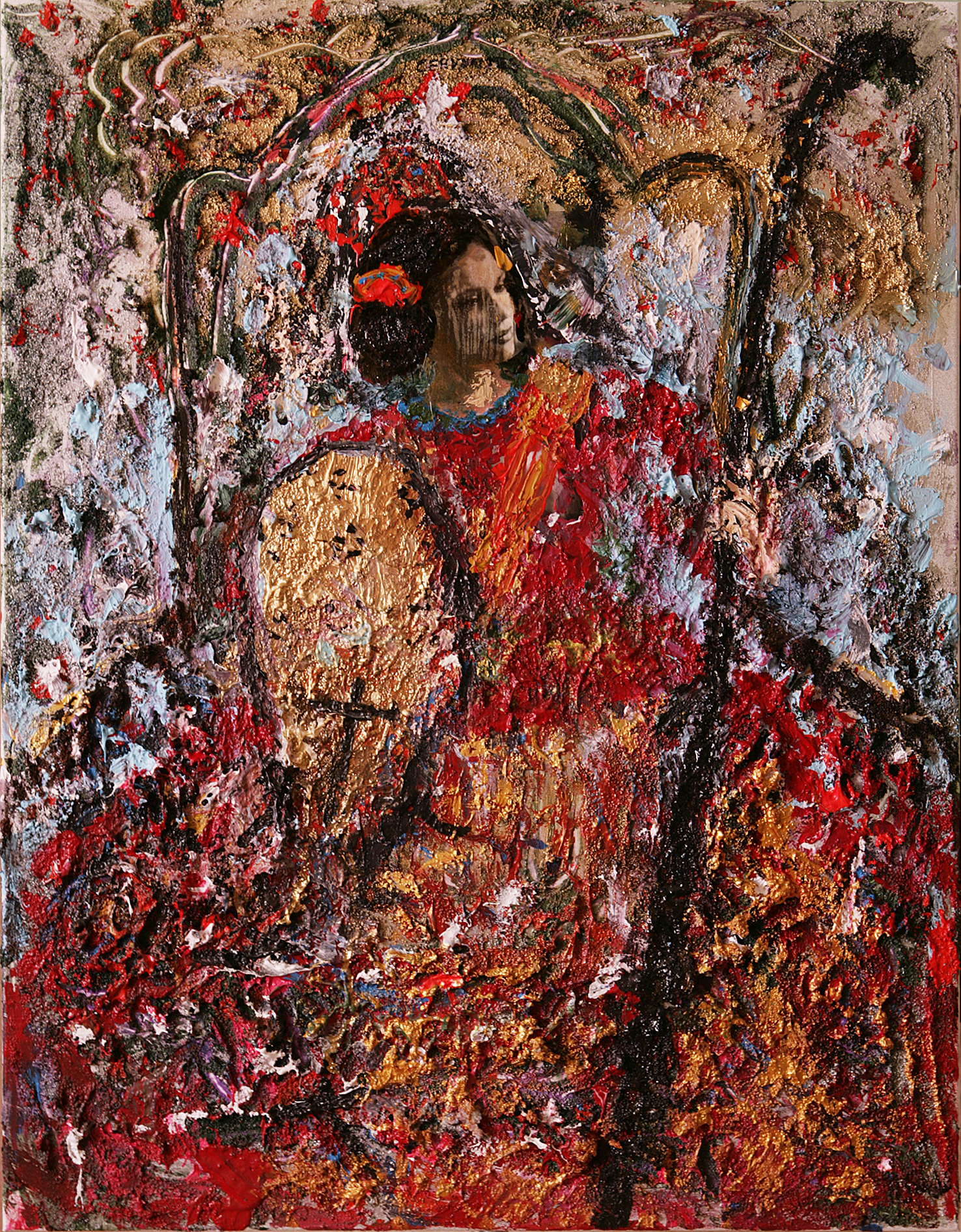 Título: REGINA Técnica: mixta, collage acrílico, polvo cuarzo, tela sobre lienzo Medidas: 90×70 cm Año: 2011