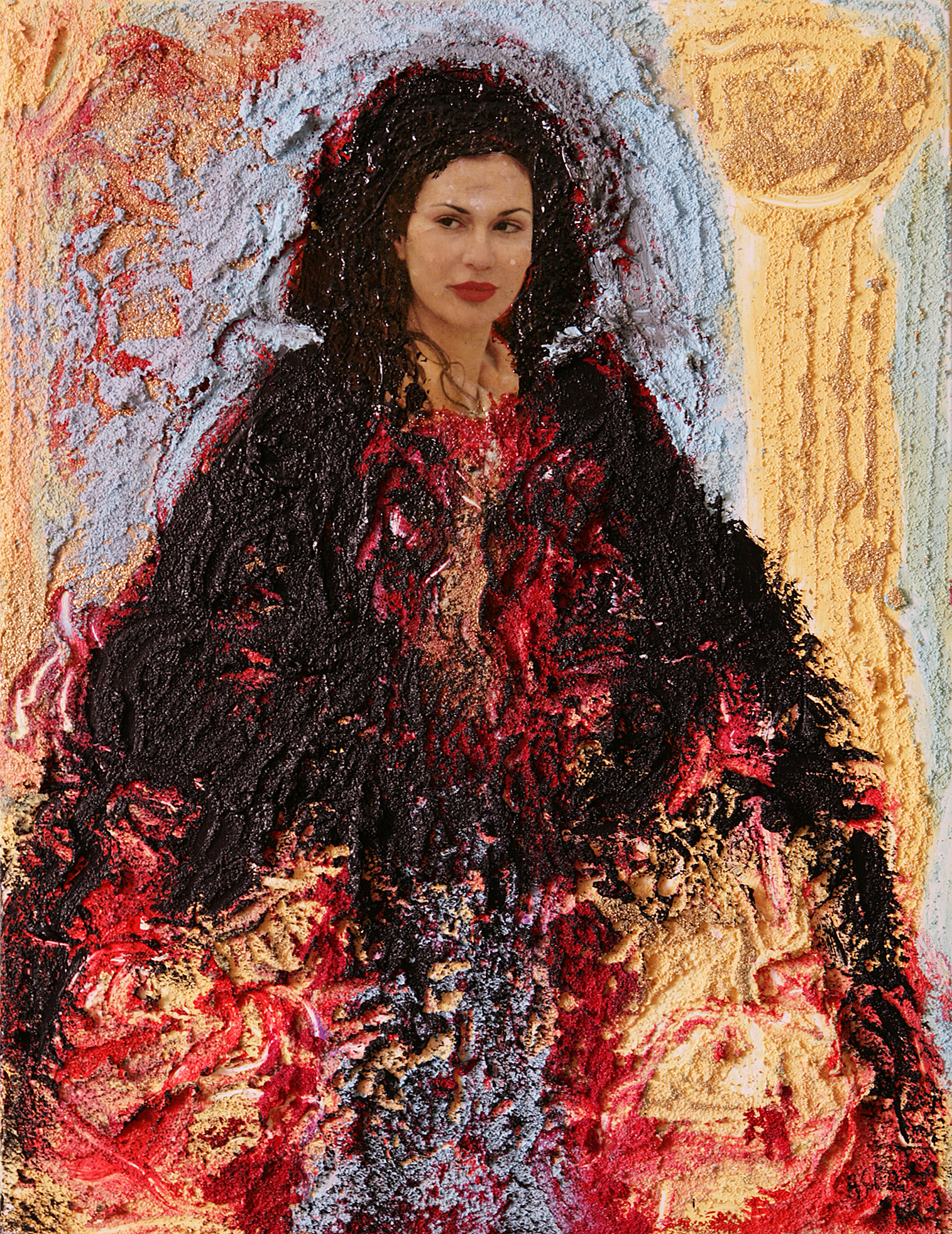 Título: SOBERANÍA Técnica: mixta, collage,acrílico, polvo cuarzo sobre lienzo Medidas: 90×70 cm Año: 2012